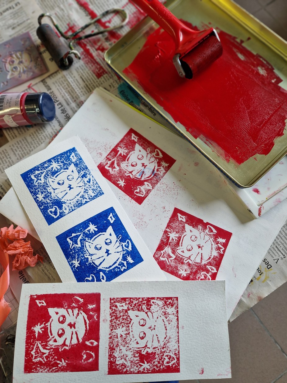 – gravure sur gomme ou lino